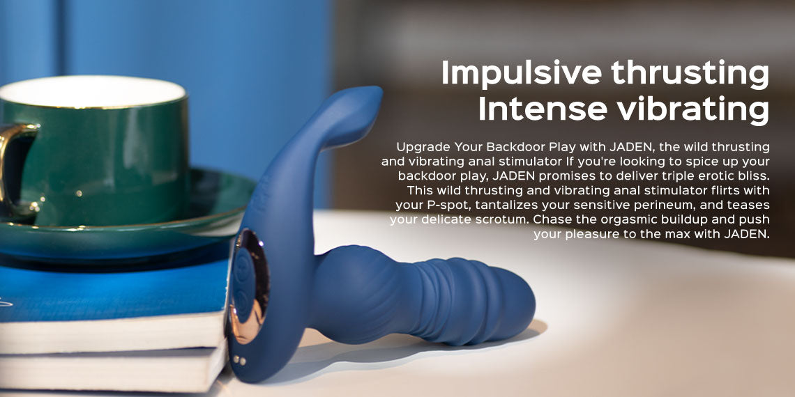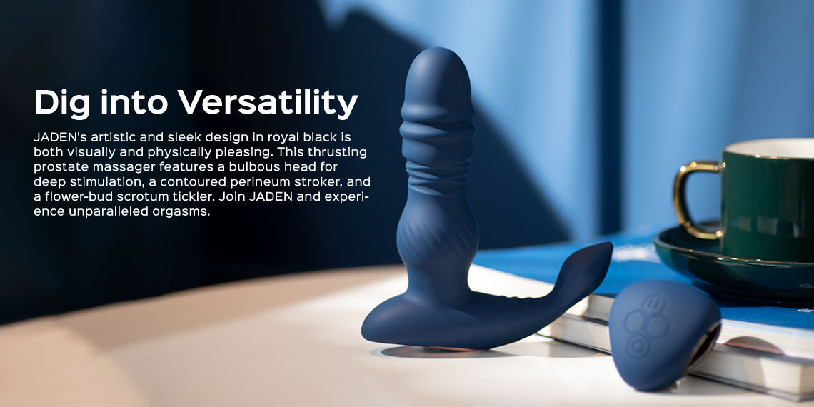 Dedicated to satisfying all your magical P-spot orgasms and arousing your shaft erection, JADEN combines triple play in one. With powerful built-in motors, the textured shaft thrusts up and down wildly to reach the P-spot while massaging the perineum and tickling the scrotum. Experience a tornado of P-orgasms and full erection!