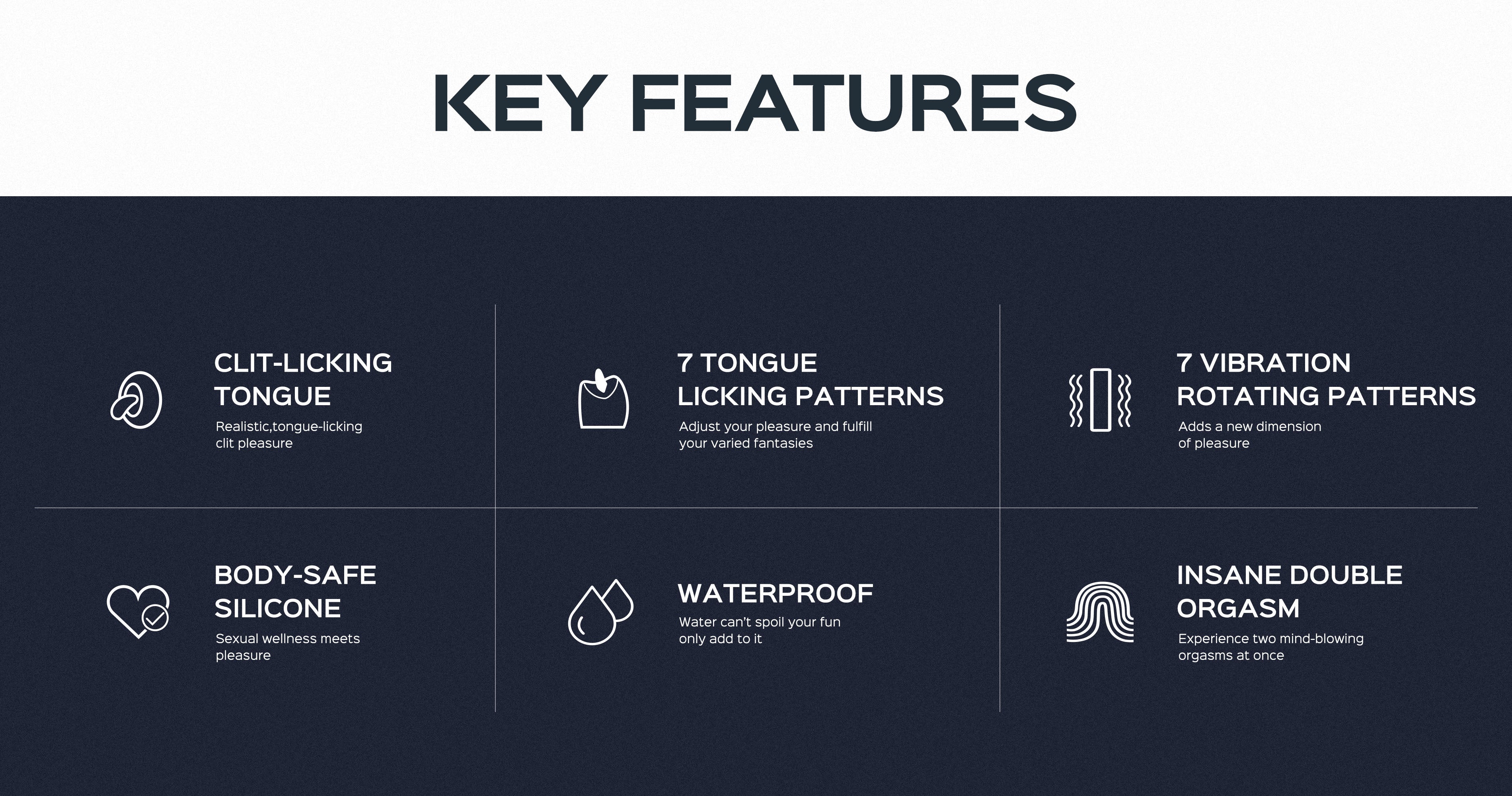 There are about 8,000 nerve endings in a clitoris, twice as many as on a penis. The clitoris is heaven for people with a vulva, it’s the miraculous pleasure center that ups the level for any sexual encounter. Because of this, this dual-end G-spot vibrator and clit stimulator was designed to have a slightly open mouth with a flexible tongue that can’t wait to taste your sweet clit. Its unparalleled clit-licking skill was born to tease and please your clit with 7 tongue-licking patterns.