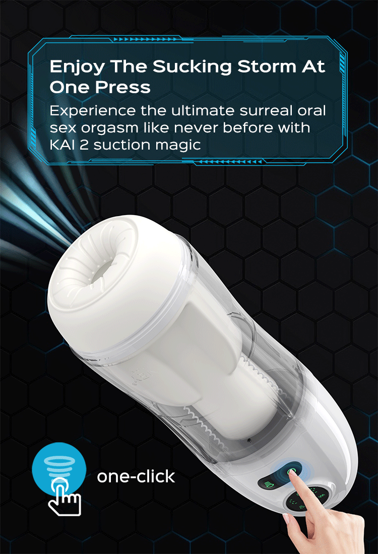 Indulge in a more powerful vibrating and sucking masturbation experience with KAI 2. With 9 energetic vibrations and 5 intense suction patterns, this new evolutionary male masturbator can take you from a teasing massage to throbbing orgasms in seconds. Long press the suction button to savor the distinctive sucking and vibrating combination and elevate your pleasure to a heavenly state. Take command of the suction and vibration intensity, and lock your fantastic masturbation mode in blissful play.