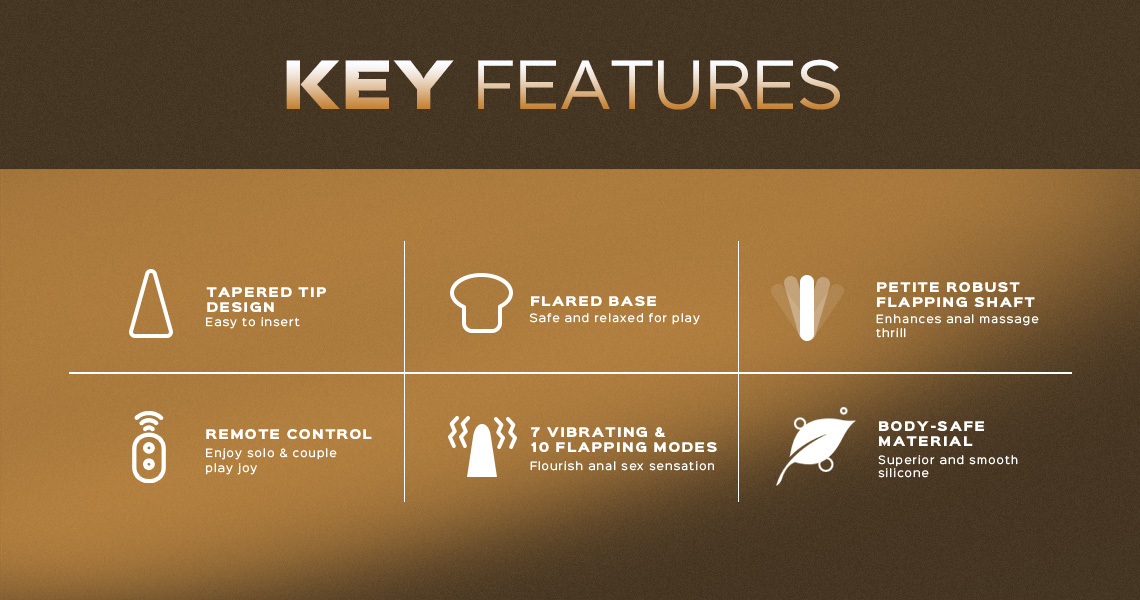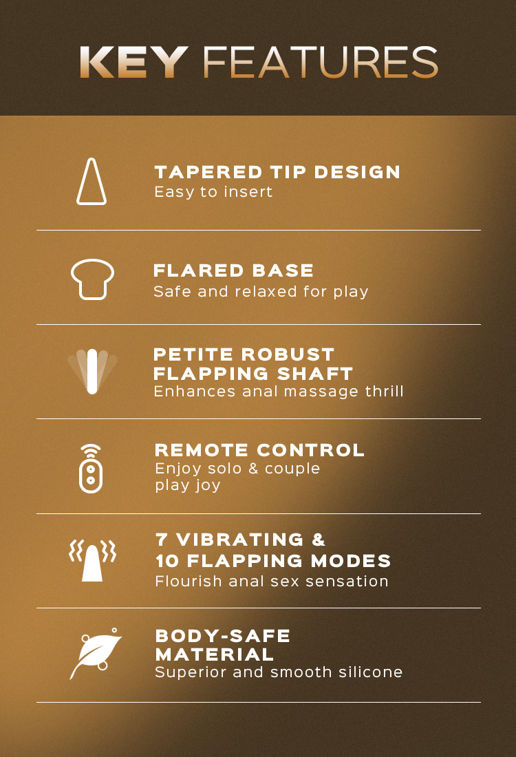 Don't worry about your anal sex toy falling out. The customized tapered tip design of this anal vibrator allows it to slide in smoothly and stay put. Its flared base promises to keep the plug in place. Tease your sensitive anal spots with the utmost joy. Spice up your sex adventure by handing over the remote control or wearing it out.