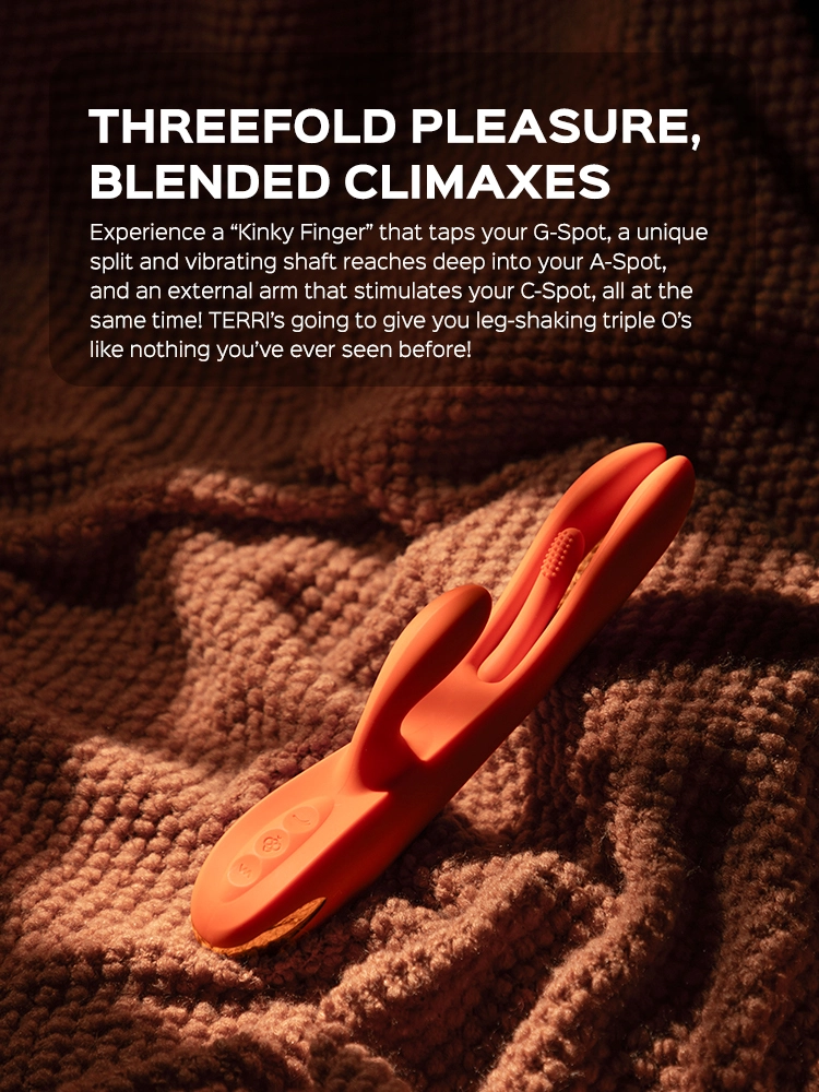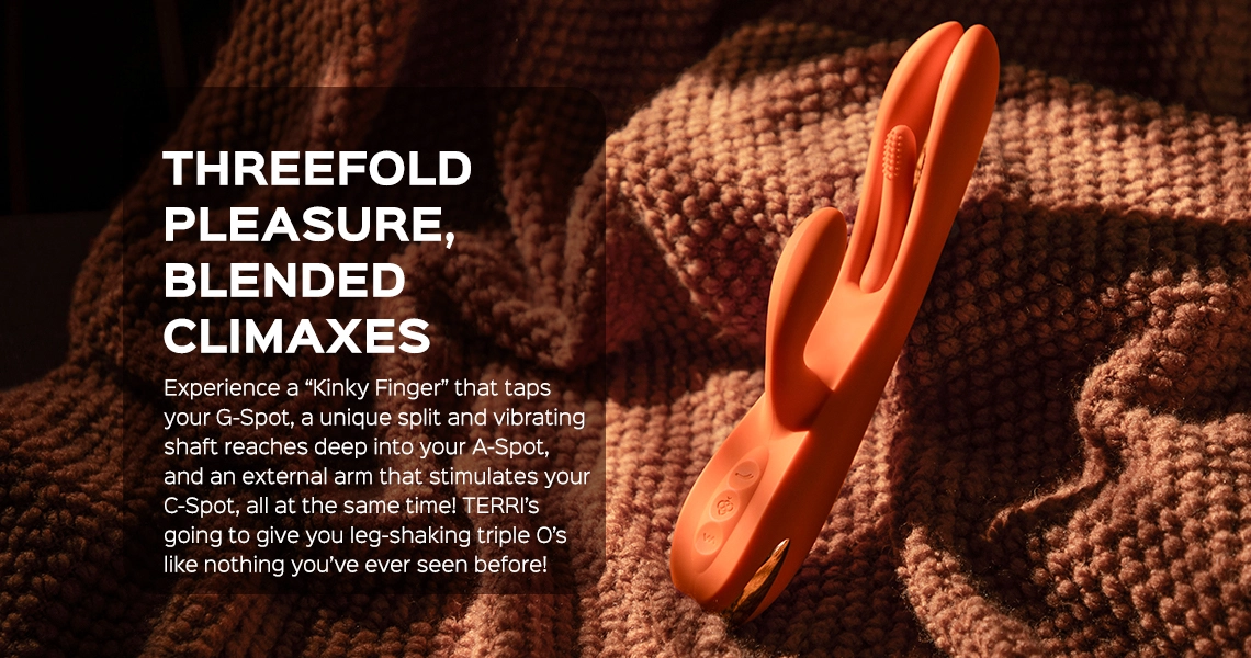 You’ve probably seen hundreds of sex toys, but TERRI stands out with its out-of-the-ordinary hollowed shaft. Characterized by a split silhouette with a sensual finger in the middle, TERRI makes your vaginal exploration truly one-of-a-kind! The “Kinky Finger” massages your G-spot while the twin shaft reaches even deeper for more tingling fun! At the same time, a flexible arm zeroes in on your clit and follows your every move. Add it all together, and it’s easy to see how TERRI gives you the perfect blended climax!